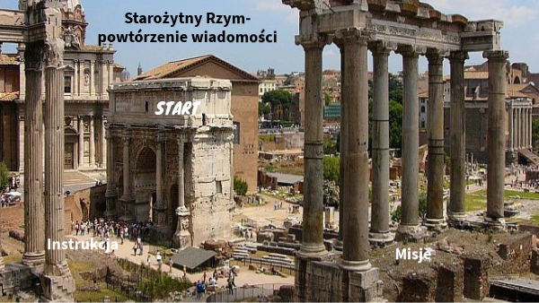 Zapraszam Cię do przygody, która pozwoli utrwalić wiadomości na temat Starożytnego Rzymu. Wykonuj wszystkie misje po kolei i zapisuj zdobyty kod. Po wykonaniu każdej misji wróć za pomocą strzałki do mapy aby wybrać kolejny etap. Po wykonaniu wszytkich zadań otwórz skarb za pomocą kodu - cyfr, które zapisałeś oraz prześlij do mnie informację zwrotną Miłej zabawy !