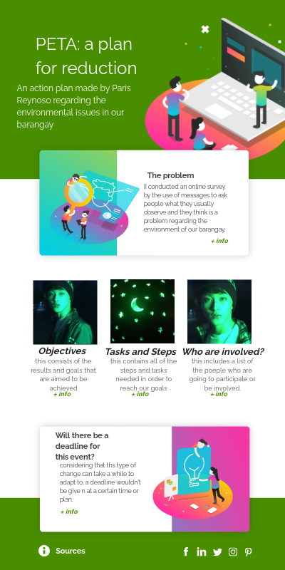 An action plan made by Paris Reynoso regarding the environmental issues in our barangay