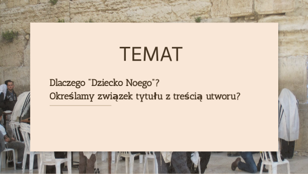 Dlatego na dzisiejszej lekcji omówimy funkcje tytułu oraz jego związek z treścią utworu "Dziecko Noego".