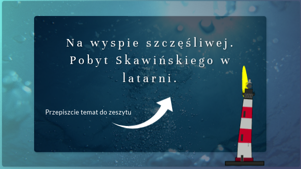 Opiszcie wyspę, na której znajdowała się latarnia i życie Skawińskiego. Skorzystajcie z cytatów poniżej.