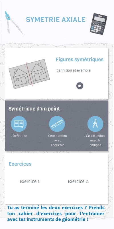 Tu as terminé les deux exercices ? Prends ton cahier d'exercices pour t'entrainer avec tes instruments de géométrie !