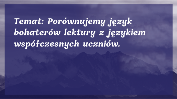 Temat: Porównujemy język bohaterów lektury z językiem współczesnych uczniów.