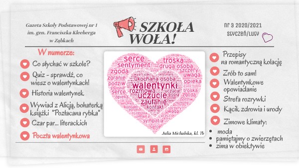 W tym numerze czeka Cię wiele atrakcji - na rozgrzewkę quiz, który sprawdzi, co wiesz o walentynkach. A może Walentynkach? Nie masz pewności? Zatem zanim rozpoczniesz quiz, koniecznie sprawdź poprawną pisownię! kiknij tutaj!