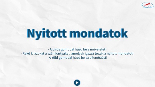 - A piros gombbal húzd be a műveletet! - Rakd ki azokat a számkártyákat, amelyek igazzá teszik a nyitott mondatot! - A zöld gombbal húzd be az ellenőrzést!