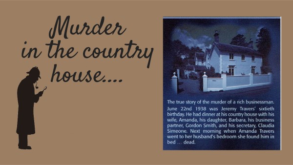 1. Jeremy Travers był bogatym człowiekiem biznesu. 2. On urządził swoje urodziny w domu na wsi. 3. W domu na wsi było 5 ludzi. 4. Jego żona, Amanda, nie kochała go. 5. Jego córka, Barbara, uważała, że był wspaniałym ojcem. 6. Jego sekretarka, Claudia, była w nim zakochana. 7. On jej obiecał (promise to do), że opuści żonę i że się z nią ożeni. 8. On złamał swoją obietnicę i Claudia była zła na niego.