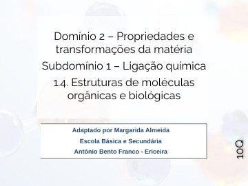 Domínio 2 – Propriedades e transformações da matéria Subdomínio 1 – Ligação química 1.4. Estruturas de moléculas orgânicas e biológicas