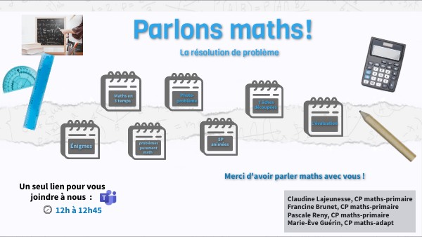 Claudine Lajeunesse, CP maths-primaire Francine Brunet, CP maths-primaire Pascale Reny, CP maths-primaire Marie-Ève Guérin, CP maths-adapt