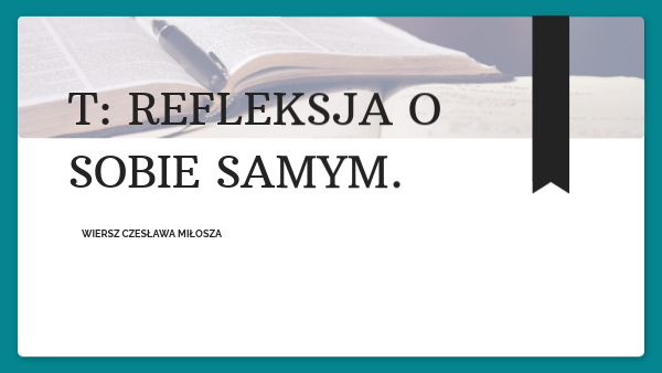 I jeszcze na koniec zastanów się:1. Jaką osobą chcesz być? 2. Co możesz zrobić, by dążyć do ideału? A teraz kilka słów o samym autorze wiersza - Czesławie Miłoszu.