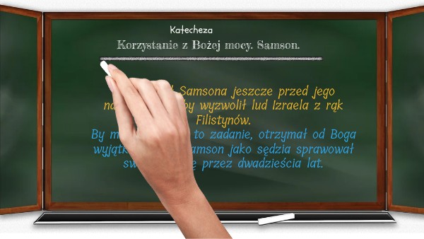 – Jakie czyny Samsona pokazują, że miał niezwykłą siłę?– Co dawało mu siłę przekraczającą możliwości człowieka?– Kto sprawił, że Samson mógł dokonywać rzeczy niezwykłych?