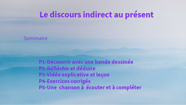 P1-Découvrir avec une bande dessinée P2-Réfléchir et déduire P3-Vidéo explicative et leçon P4-Exercices corrigésP5-Une chanson à écouter et à compléter