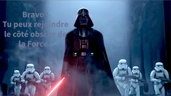 Bravo ! Tu peux rejoindre le côté obscur de la Force !