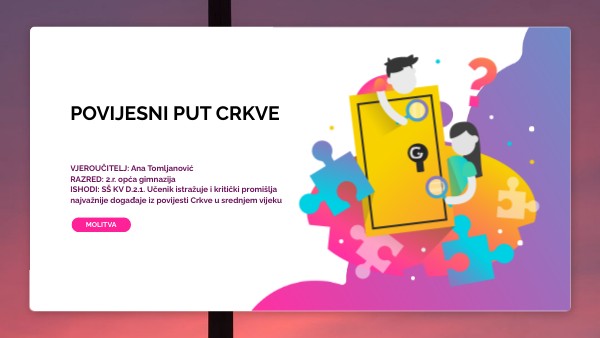 VJEROUČITELJ: Ana TomljanovićRAZRED: 2.r. opća gimnazija ISHODI: SŠ KV D.2.1. Učenik istražuje i kritički promišlja najvažnije događaje iz povijesti Crkve u srednjem vijeku
