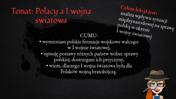 Celem lekcji jest: analiza wpływu sytuacji międzynarodowej na sprawę polską w okresie I wojny światowej