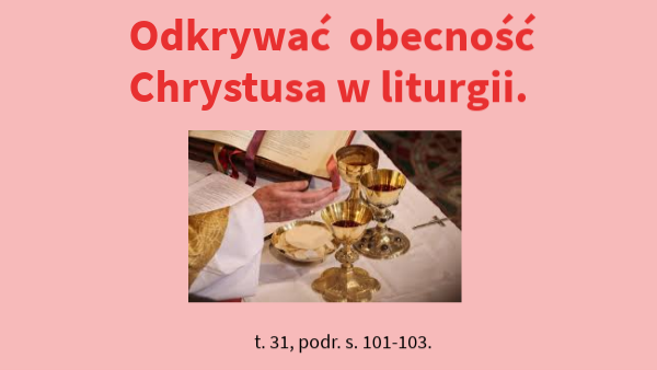 Chrystus jest obecny w naszym życiu na różne sposoby. Przede wszystkim możemy się z Nim spotykać w czasie liturgii.