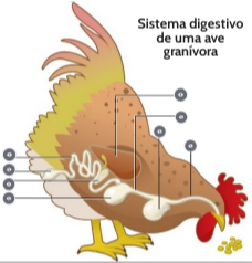 Sistema digestivo de uma ave granívora