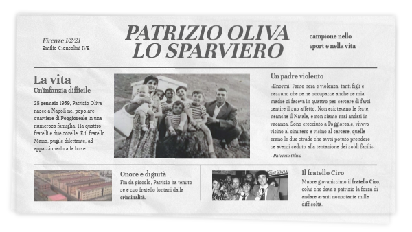 28 gennaio 1959, Patrizio Oliva nasce a Napoli nel popolare quartiere di Poggioreale in una numerosa famiglia. Ha quattro fratelli e due sorelle. È il fratello Mario, pugile dilettante, ad appassionarlo alla boxe
