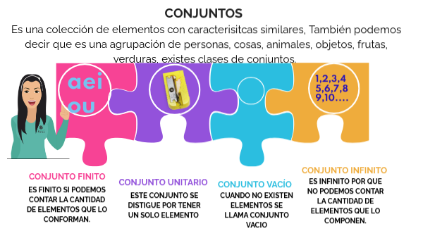 Es una colección de elementos con caracterisitcas similares, También podemos decir que es una agrupación de personas, cosas, animales, objetos, frutas, verduras, existes clases de conjuntos.