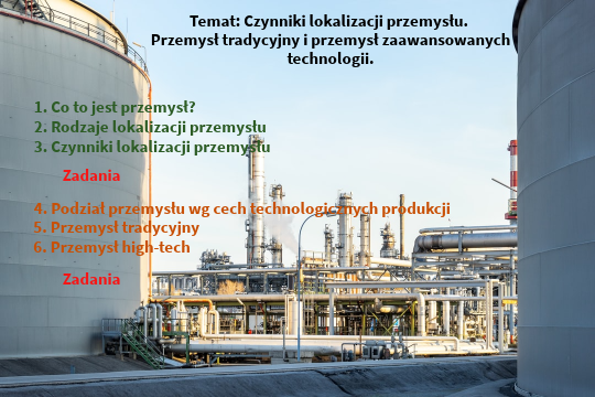 Temat: Czynniki lokalizacji przemysłu. Przemysł tradycyjny i przemysł zaawansowanych technologii.