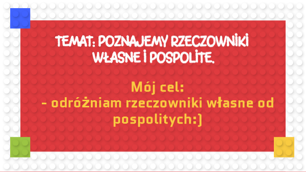 Temat: Poznajemy rzeczowniki własne i pospolite.