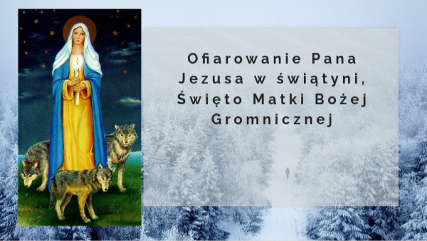 Święto Ofiarowania Pańskiego nazywane jest Świętem Matki Bożej Gromnicznej. Tak jak Maryja wniosła Jezusa do świątyni jerozolimskiej, tak też przynosi światło wierzącym. Dlatego na tę pamiątkę świecimy gromnicę, która jest symbolem Światła świata, którym jest Jezus Chrystus. W tym samym dniu w Kościele powszechnym przypada Światowy Dzień Życia Konsekrowanego. Modlimy się za zakonników i zakonnice i wspieramy ich materialnie.