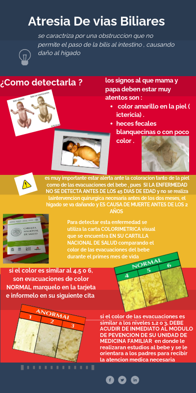 Para detectar esta enfermedad se utiliza la carta COLORIMETRICA visual que se encuentra EN SU CARTILLA NACIONAL DE SALUD comparando el color de las evacuaciones del bebe durante el primes mes de vida