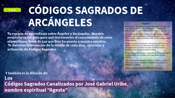 Tu espacio de aprendizaje sobre Ángeles y Arcángeles. Nuestro propósito es ser guía para que incrementes el conocimiento de estos maravillosos Seres de Luz que Dios ha puesto a nuestro servicio. Te daremos información de la misión de cada Uno, ejercicios y activación de Códigos Sagrados .