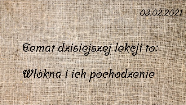 Temat dzisiejszej lekcji to: Włókna i ich pochodzenie