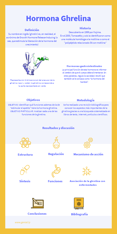 Se ha realizado una revisión bibliográfica para conocer los aspectos más importantes de la ghrelina gracias a una búsqueda sistematizada en libros de texto, internet y artículos científicos.