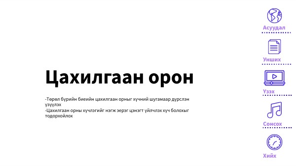 Видеоноос 1.43-2.28 хүртэлх хугацааг үзээрэй. Дараа нь видеог зогсоож цаасаа дэлгэц дээр давхарлан цахилгаан орны зургийг зурж дүгнэлт бичээрэй.