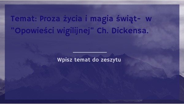 Temat: Proza życia i magia świąt- w "Opowieści wigilijnej" Ch. Dickensa.