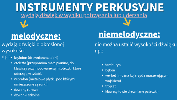 - czelesta (przypomina małe pianino, do klawiszy przymocowane są młoteczki, które uderzają w sztabki