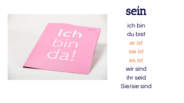 ich bindu bist er ist sie ist es ist wir sind ihr seid Sie/sie sind