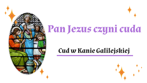 1. Pan Jezus udał się na wesele 2. W czasie wesela zabrakło wina 3. Maryja widzi niepokój gospodarzy wesela 4. Maryja prosi Jezusa o pomoc 5. Słudzy napełniają stągwie wodą 6. Jezus dokonuje cudu 7. Starosta kosztuje wino