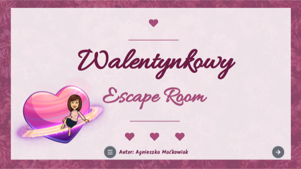 Witaj w Walentynkowym Pokoju Zagadek.Przed Tobą szereg zadań związanych ze Świętem Zakochanych. Rozwiąż je. Pamiętaj! Zapisuj wszystkie potrzebne informacje, aby szczęśliwie dotrzeć do celu.
