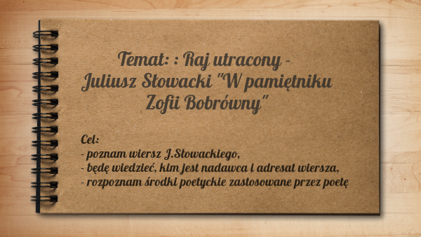 Temat: : Raj utracony - Juliusz Słowacki "W pamiętniku Zofii Bobrówny"