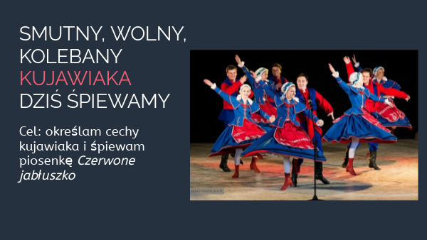 Cel: określam cechy kujawiaka i śpiewam piosenkę Czerwone jabłuszko