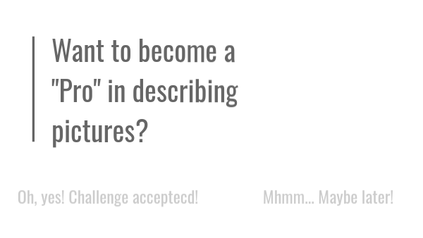 Listen to both picture descriptions carefully. Remember of what you've learned in terms of "describing pictures" and decide which one is the better one. Klick on it!