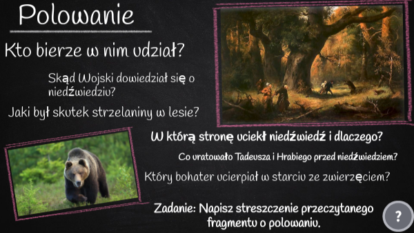 Zadanie: Napisz streszczenie przeczytanego fragmentu o polowaniu.