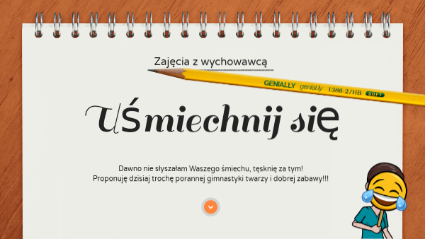 Dawno nie słyszałam Waszego śmiechu, tęsknię za tym!Proponuję dzisiaj trochę porannej gimnastyki twarzy i dobrej zabawy!!!