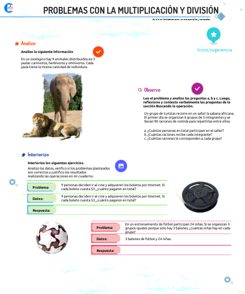 Un grupo de turistas recorre en un safari la sabana africana.El primer día se organizan 6 grupos de 5 integrantes y se llevan 90 raciones de comida para repartirlas entre ellos.