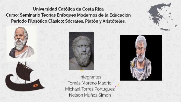 Universidad Católica de Costa RicaCurso: Seminario Teorías Enfoques Modernos de la Educación Periodo Filosófico Clásico: Sócrates, Platón y Aristóteles.