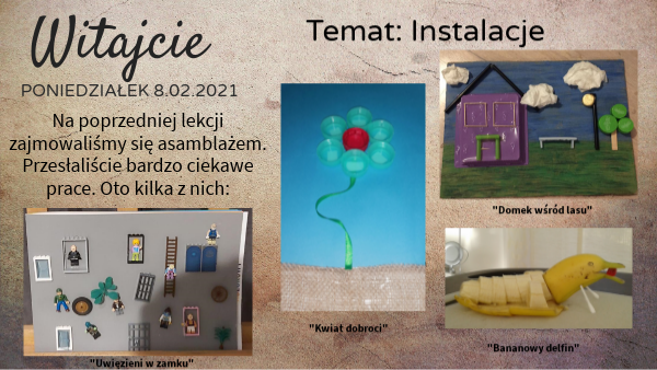 Na poprzedniej lekcji zajmowaliśmy się asamblażem. Przesłaliście bardzo ciekawe prace. Oto kilka z nich: