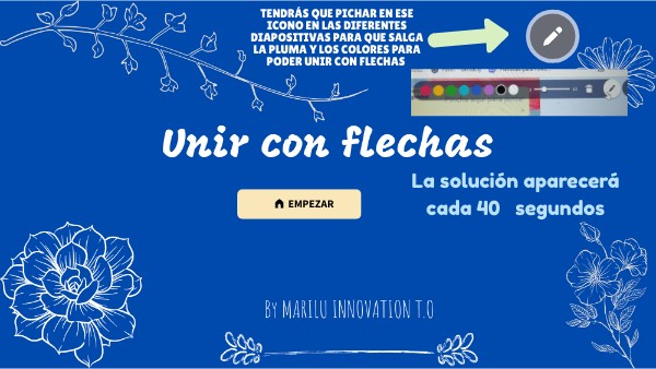 tendrás que pichar en ese icono en las diferentes diapositivas para que salga la pluma y los colores para poder unir con flechas