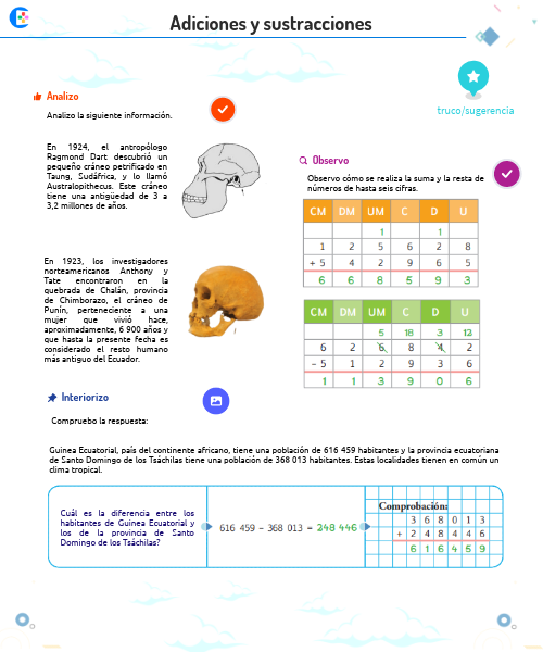 Observo cómo se realiza la suma y la resta de números de hasta seis cifras.