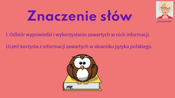 I. Odbiór wypowiedzi i wykorzystanie zawartych w nich informacji. Uczeń korzysta z informacji zawartych w słowniku języka polskiego.