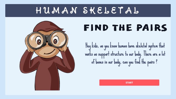 Hey kids, as you know human have skeletal system that works as support structure to our body. There are a lot of bones in our body, can you find the pairs ?