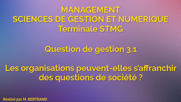 Question de gestion 3.1Les organisations peuvent-elles s’affranchir des questions de société ?