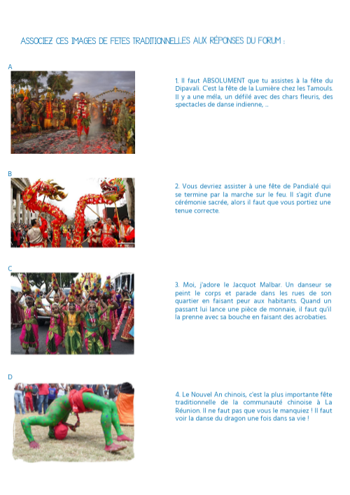 Associez ces images de fEtes traditionnelles aux réponses du forum :