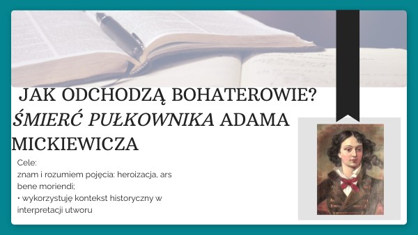 Cele:znam i rozumiem pojęcia: heroizacja, ars bene moriendi; • wykorzystuję kontekst historyczny w interpretacji utworu