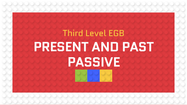We form the present simple passive with am / is / are + past participle Legos are made of plastic called ABS.